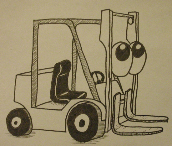 Då var det dags för mig att skriva i bloggen. Det är inte så att jag har fruktat detta pågrund av rädsla för skrivkramp eller dylik, nej, nej. Hade tänkt göra som den gode Christoffer och lägga upp en bild på där jag jobbar (okey, hans var på skolan, men principen är liknande) men någon sådan bild har jag inte, så här kommer istället en bild på en gaffeltruck.