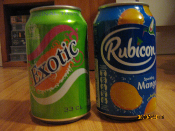 Den till vänster är inget mer än Fanta Exotic till smaken och den andra... Äcklig. Mango och äckel. Den gick ner, men då var vi sammanlagt tre som gav oss på den. Datumet på bilden är lite irriterande, men det får gå för den här gången.